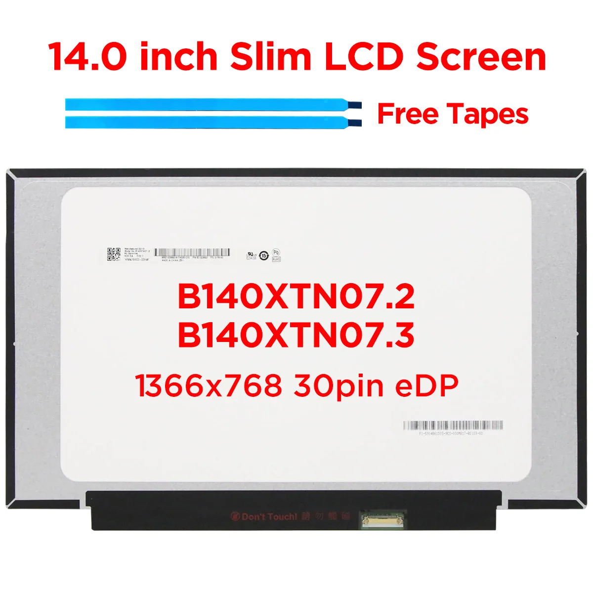 Panel De Pantalla LED 14" Tipo B140XTN07.2 - Resolución 1366x768, 30 Pines, 315mm, Compatible, Marca Visiodirect